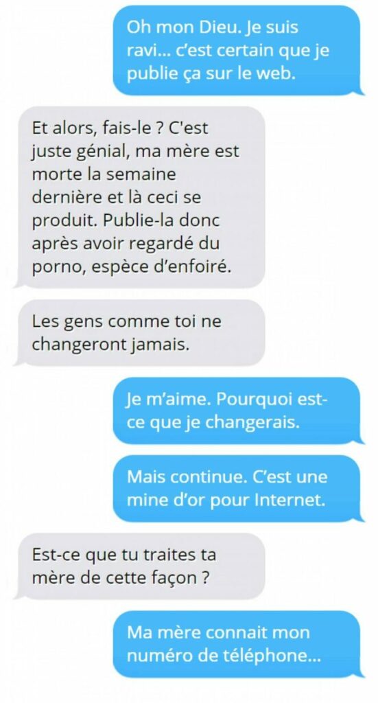 En effet, pensant parler à son adolescent, cette femme envoie un sms à un homme de 35 ans, qui lui répond qu’elle s’est trompée de destinataire bien entendu, sauf que la mère ne l’entend pas de cette oreille.