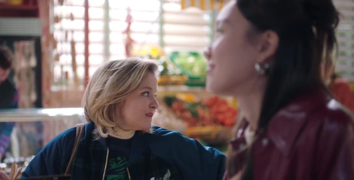 Un peu plus loin, Diane montre à Émilie une photo de Bastien. Elle le trouve très séduisant et ne cache pas son enthousiasme en commentant son allure et son sourire, ce qui suscite la curiosité et quelques sourires complices.