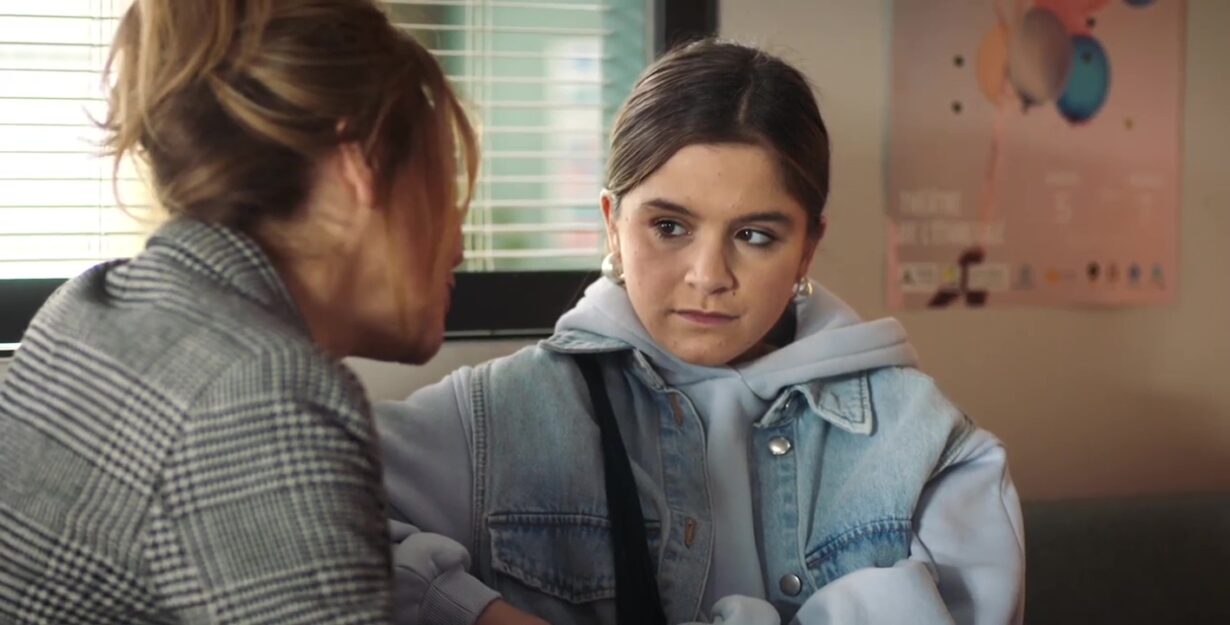 Un peu plus tard, Erica retrouve Ellie assise dans les escaliers, loin de sa salle de classe. Ellie admet qu’elle n’a pas la motivation d’y retourner. Erica l’encourage avec bienveillance, lui rappelant qu’il ne reste que quelques heures à tenir. Elle lui parle doucement, essayant de lui redonner un peu d’élan pour finir la journée. Rendez-vous à la page suivante pour lire la suite >>