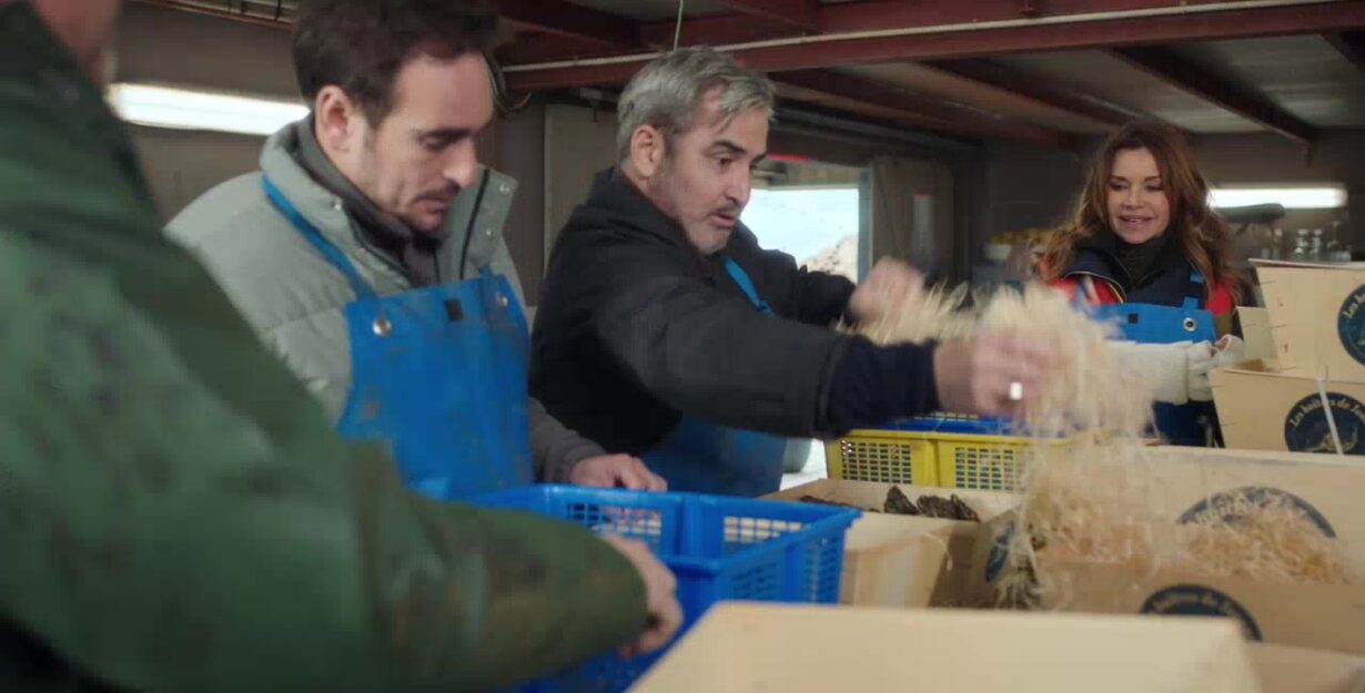 Au mas, l’activité bat son plein. Alex travaille aux côtés de Sylvain, Bruno et même Chloé, chacun s’occupant de remplir les bourriches avec efficacité. L’ambiance est animée, presque festive, car pendant deux jours les halles ne désemplissent pas. Les discussions s’entrecroisent, les gestes se coordonnent, et l’esprit d’équipe permet d’avancer rapidement malgré la foule.