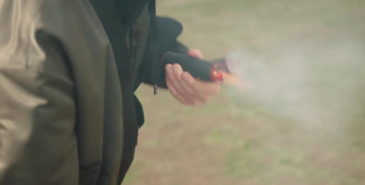 Le défilé débute avec enthousiasme. Mais Sara remarque Basile, déguisé et prêt à lancer des bâtons avec des mèches en direction du podium.