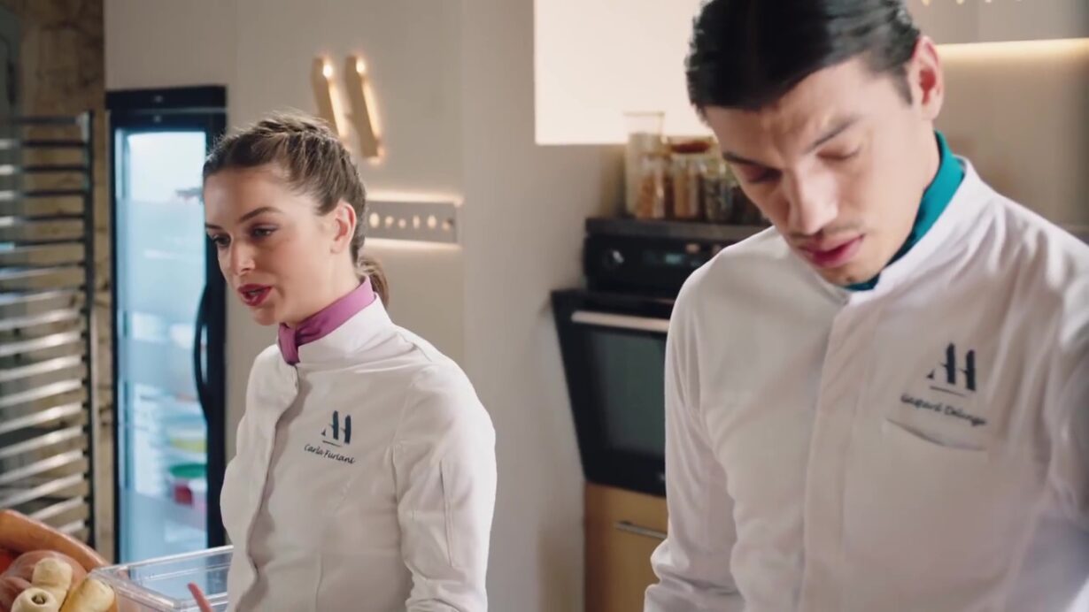 Plus tard, Gaspard se retrouve seul en cuisine et décide de préparer malgré tout la terrine selon la recette de Coline. Carla arrive pour préparer le cours d’Alice et remarque immédiatement l’état d’esprit de Gaspard. Elle lui suggère, non sans malice, qu’il serait surtout inquiet de voir Coline s’éloigner à cause de César, qu’elle surnomme ironiquement « Brutus ».