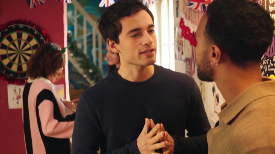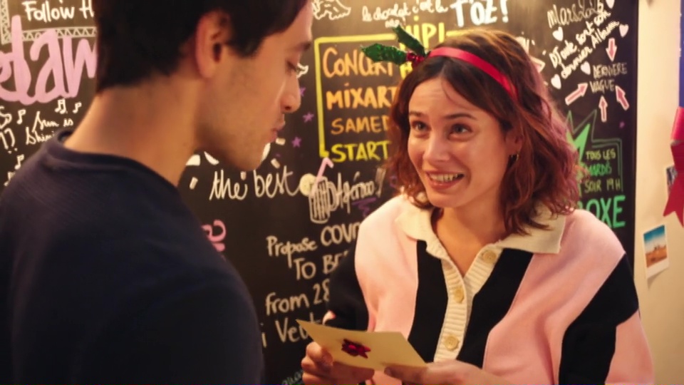 Au foyer, l’heure est enfin venue d’ouvrir les cadeaux du secret santa. L’ambiance se détend et chacun découvre les surprises préparées. Solal ouvre un tee-shirt au message audacieux destiné à Bianca, ce qui provoque quelques réactions amusées autour de lui.