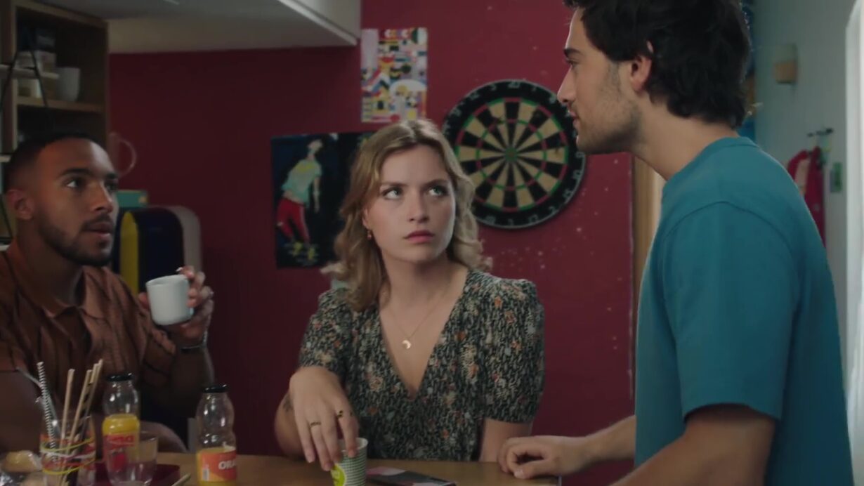 Parmi eux, Coline se distingue en choisissant de poser avec une banderole portant l’inscription humoristique « Miss pâté en croûte », attirant ainsi l’attention de Gaspard. Celui-ci, espiègle, ne manque pas de la surnommer « Porcinet », accentuant ainsi l’ambiance joviale qui règne durant la séance.