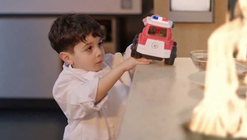 Pendant ce temps, Naël joue innocemment à proximité d’une source de chaleur, imitant les bruits d’un camion d’intervention avec son jouet. La situation devient critique sans qu’il en ait conscience. Heureusement, Anaïs et Rose arrivent à temps pour intervenir et éviter une conséquence grave, ramenant immédiatement l’enfant en sécurité.