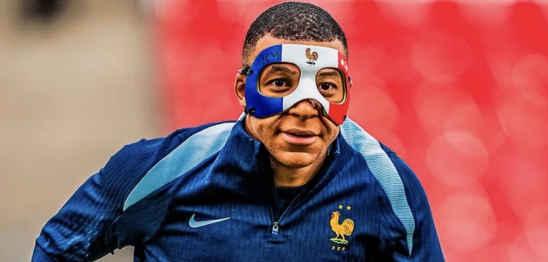 Le 20 juin 2024, lors de l’entraînement collectif, Mbappé est apparu avec un masque aux couleurs tricolores, suscitant l’enthousiasme des fans français. Ils pensaient avoir découvert le masque avec lequel il évoluerait pendant le reste du tournoi. Cependant, cette première version n’a pas reçu l’aval des autorités compétentes.