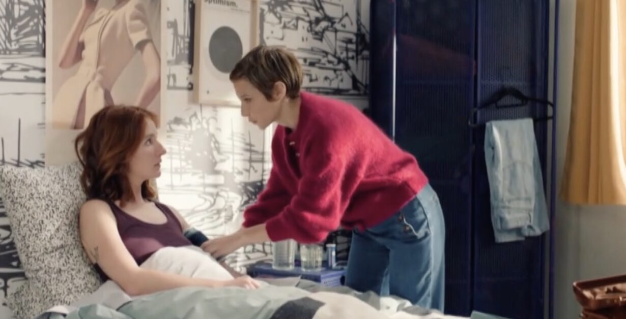 À la résidence, Léa examine Apolline et constate une légère tension ainsi qu’un peu de fièvre. Avec douceur, elle l’aide à synchroniser sa respiration pour apaiser ses angoisses. Elle évoque une arythmie, mais se montre rassurante en expliquant que cela peut être lié à la fatigue accumulée. Son ton calme contribue à détendre l’atmosphère et à redonner confiance à la jeune femme.