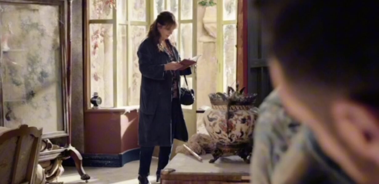 Dans l’exploration des lieux, Blanche découvre un vieux carnet dans un placard, qu’elle glisse dans son sac. Un bruit les alerte soudain. Eric, sorti un moment, revient pour aider Blanche, mais l’agresseur, profitant de l’occasion, tente de lui voler son sac. Après une brève lutte, Eric parvient à le chasser. Toutefois, ni Blanche ni Eric n’ont pu identifier le visage de l’assaillant.