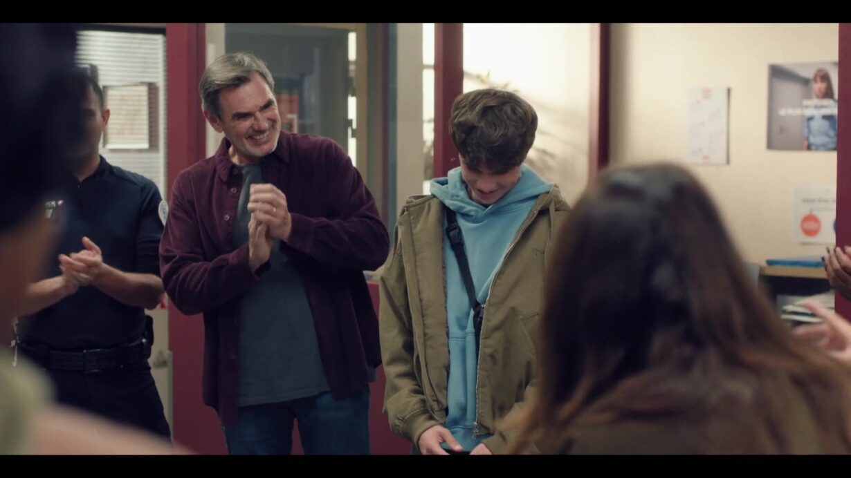Lorsque Martin arrive au commissariat, l’ambiance change rapidement. Patrick prend la parole pour prononcer un discours chaleureux et féliciter le petit-fils de Luna. Les mots sont sincères et soulignent l’engagement ainsi que le sérieux de Martin dans son parcours.