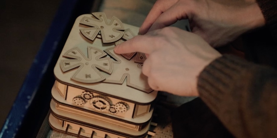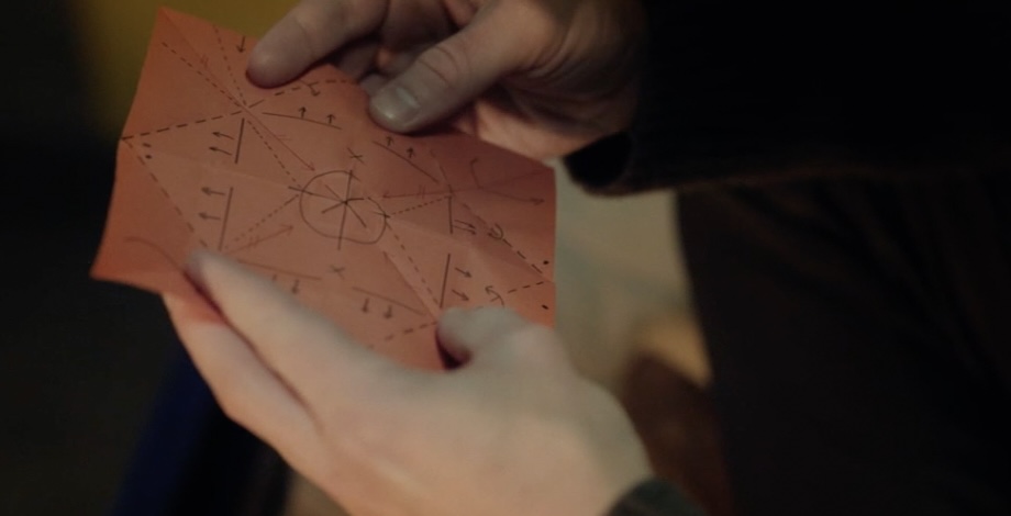 Il décide alors de reproduire le même pliage que celui observé sur l’origami vert, afin de comparer les deux éléments. Une fois positionné correctement sur l’objet en question, un mécanisme se déclenche, révélant un tiroir caché. Ce moment marque une avancée significative dans la compréhension de cette énigme complexe.