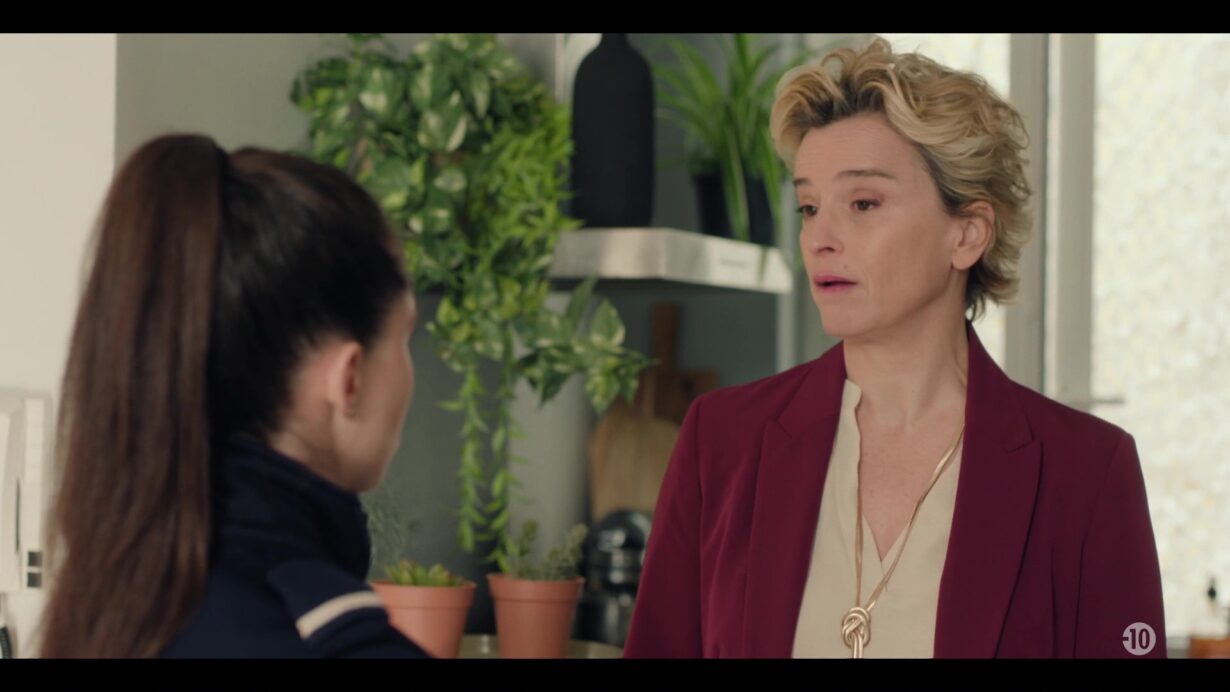 Morgane ne tarde pas à remarquer un détail suspect et finit par découvrir Laura dissimulée derrière un rideau. La tension monte d’un cran. Pour éviter d’être retenue ou interrogée davantage, Laura renverse volontairement un vase, créant une diversion sonore. Profitant de la confusion, elle s’éclipse rapidement. Cette fuite précipitée laisse Morgane perplexe et renforce son intuition que quelque chose d’important se trame.