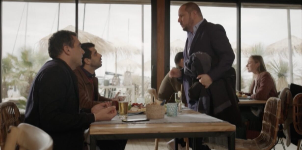 Au restaurant, Enric et Bilal maladroits conseillent à Laurent de rencontrer des femmes en personne plutôt que sur une application. Comprenant que Léonor leur a tout raconté, Laurent quitte le restaurant quelque peu agacé. Pendant ce temps, Nathalie dîne avec ses enfants. Emma interroge sa mère sur son travail, qui annonce une possible licenciement en raison d’une baisse d’activité.