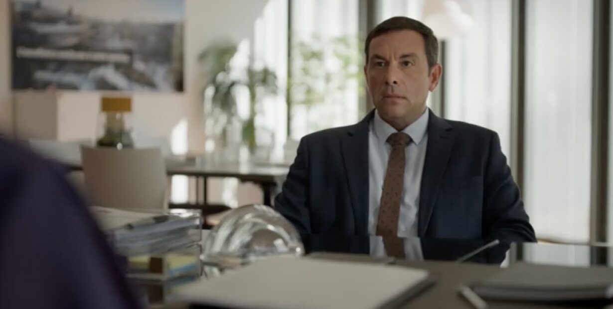 Pendant ce temps, au sein du groupe de santé Laumière, l’homme chargé de gérer la crise, M. Brian, détruit des documents cruciaux, espérant limiter les dégâts avant que l’affaire de fraude à la sécurité sociale ne prenne de l’ampleur. Il confronte ensuite Catherine Laumière, mais elle le rabroue violemment, l’accusant d’être soit un menteur, soit un incompétent doublé d’un imbécile.